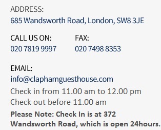 We look forward to welcoming you to London and Clapham Guest House soon.